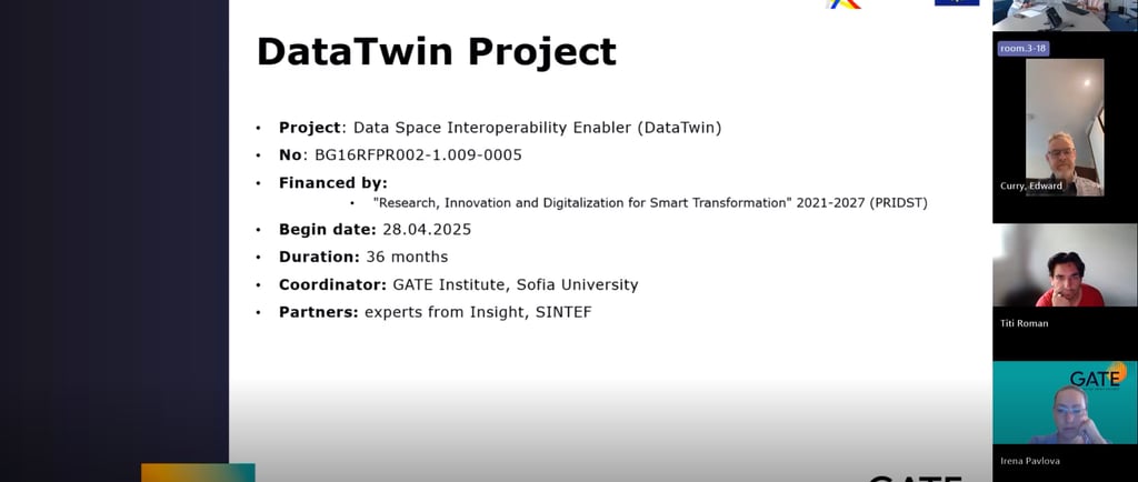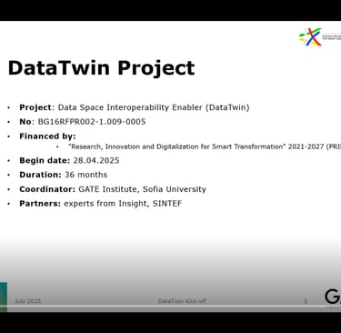 The DataTwin project officially started with a two-day online kick-off meeting held at the beginning of July. The event brought together representatives from GATE Institute, Insight Centre for Data Analytics in Ireland, and SINTEF in Norway to align on the project’s goals and lay the groundwork for collaboration.